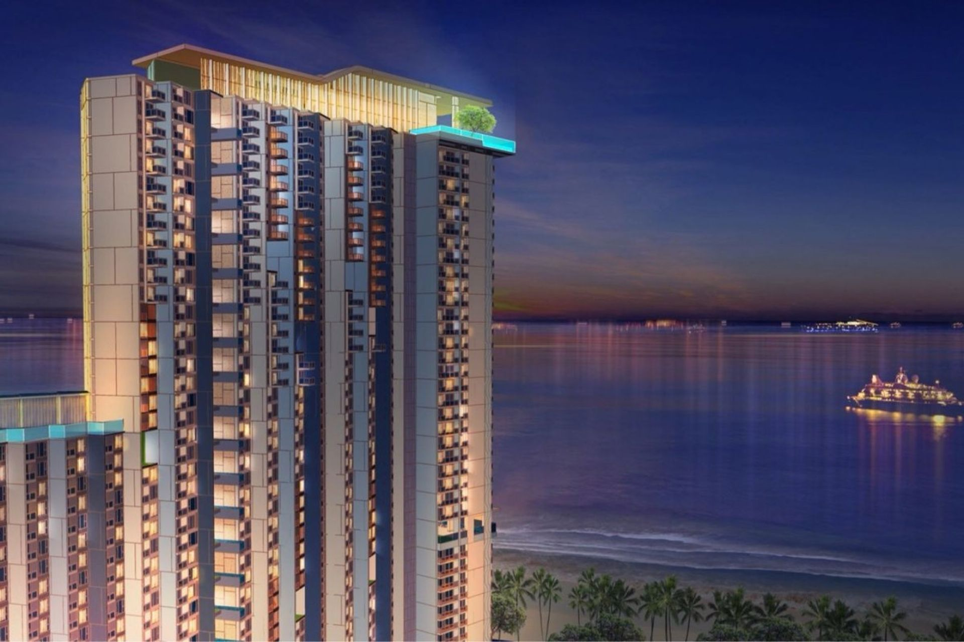 Building will include 59 floors with 1644 apartments with 1 and 2 bedrooms. Apartment with 1 bedroom 29 - 46,5 sq. m, apartment with 2 bedrooms 64 - 72 sq. m. Also available 1-bedroom apartments of 80 sqm with private pool. For apartments with swimming pool free chairs for the lawn, a sofa and a table. All apartments have stunning sea views.