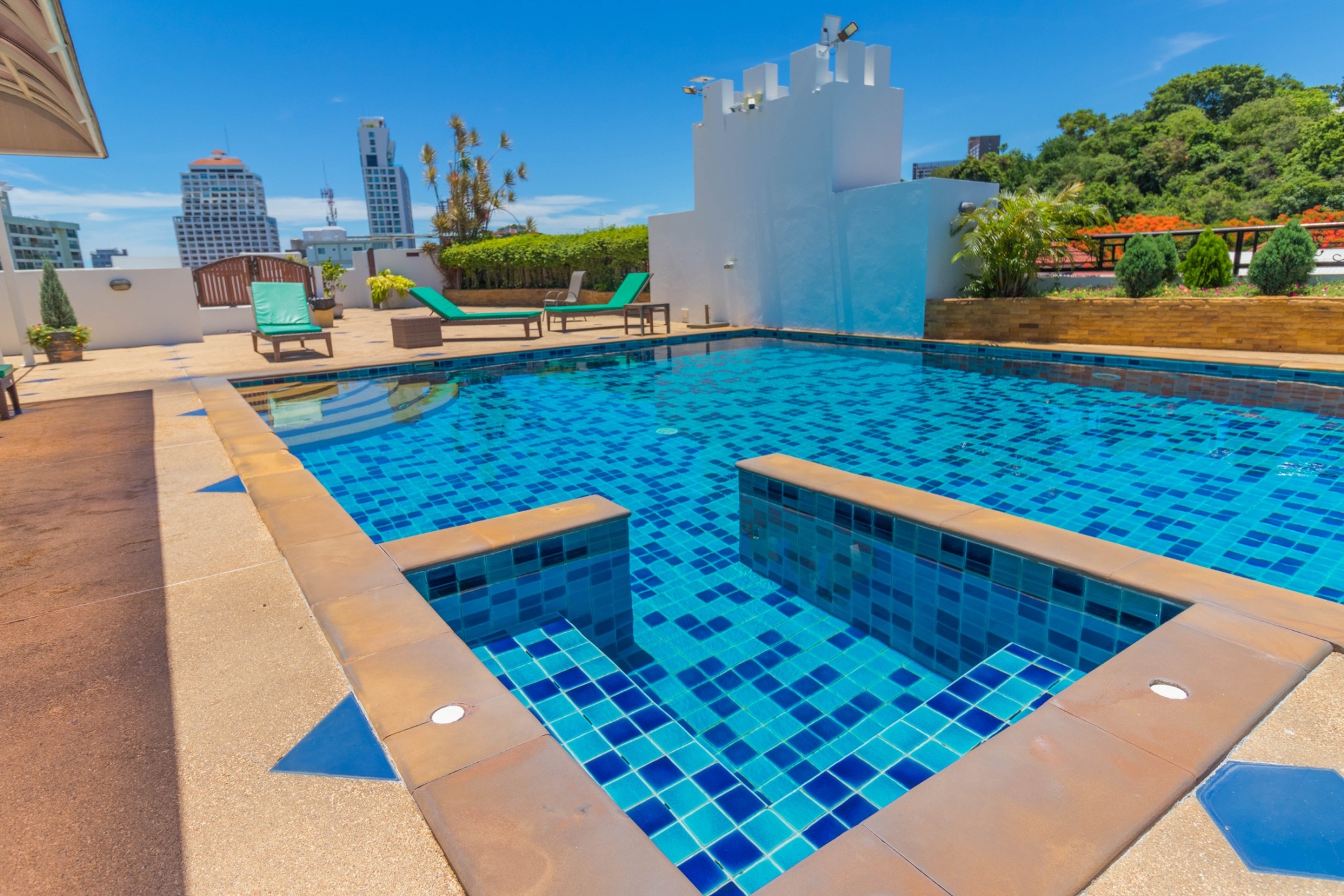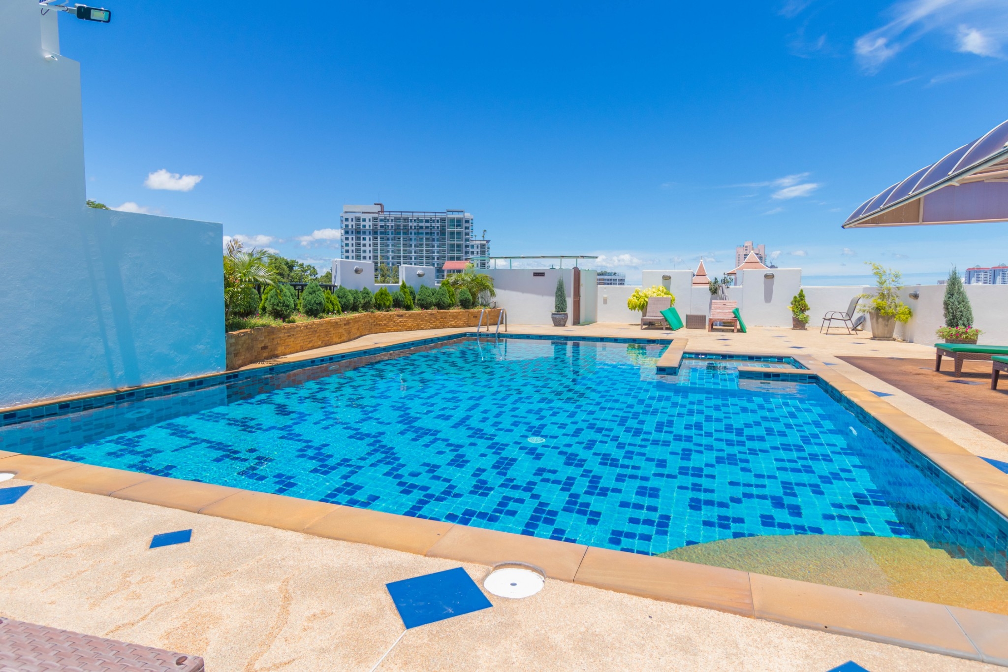 Boutique condominium located on Pratumnak Hill. Five minutes walk from Jomtien Beach. The condominium has underground parking, large gym, rooftop pool, security. It is 1.2 km from Bali Hai Pier. Pattaya’s famous Walking Street is 1.8 km away.