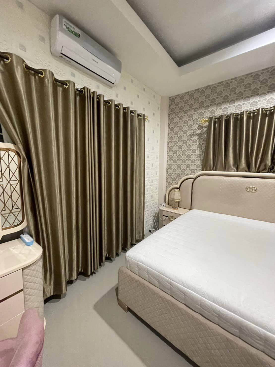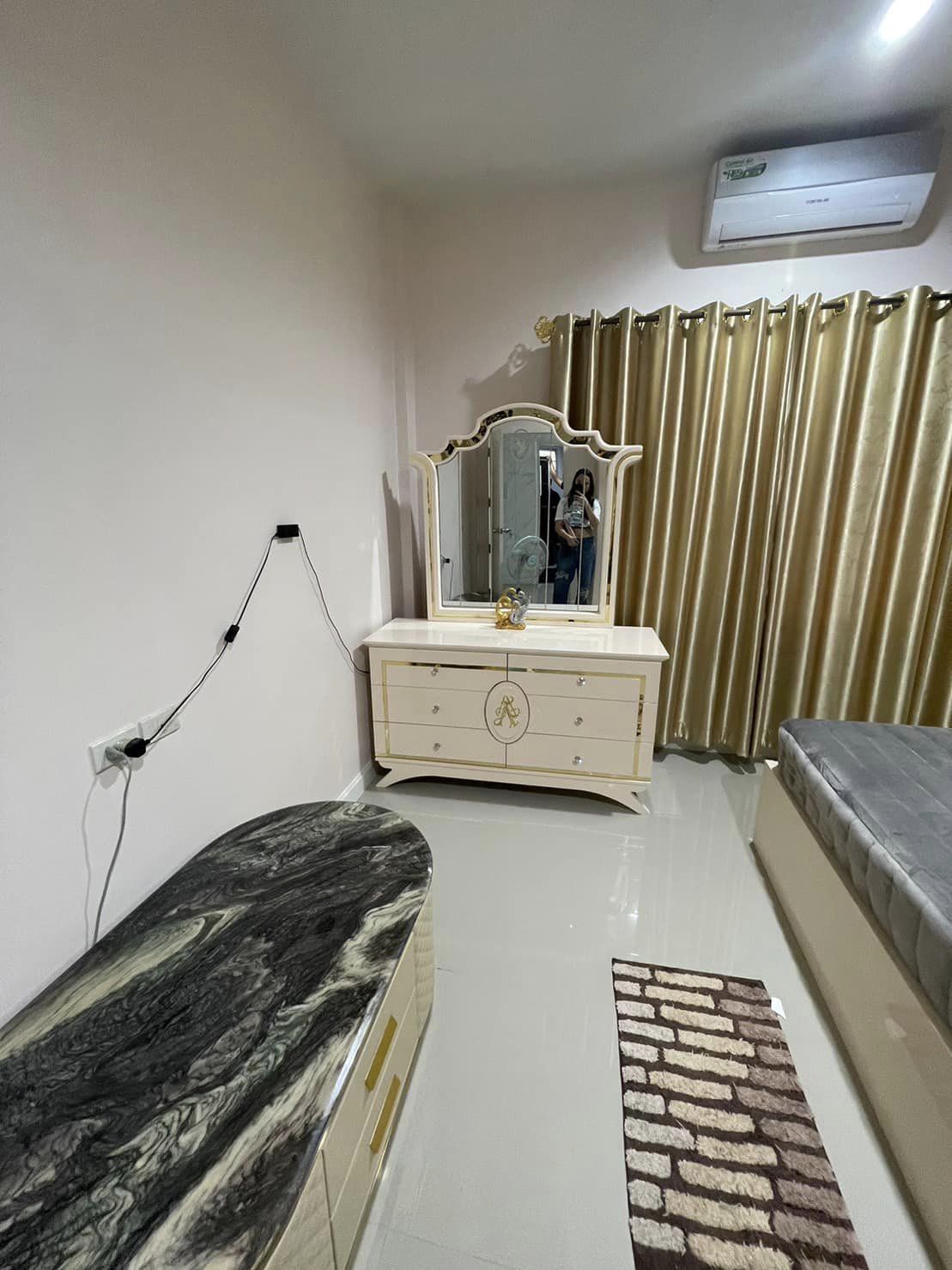 There is an air conditioner in every room, a washing machine in the back of the house and a water filter.