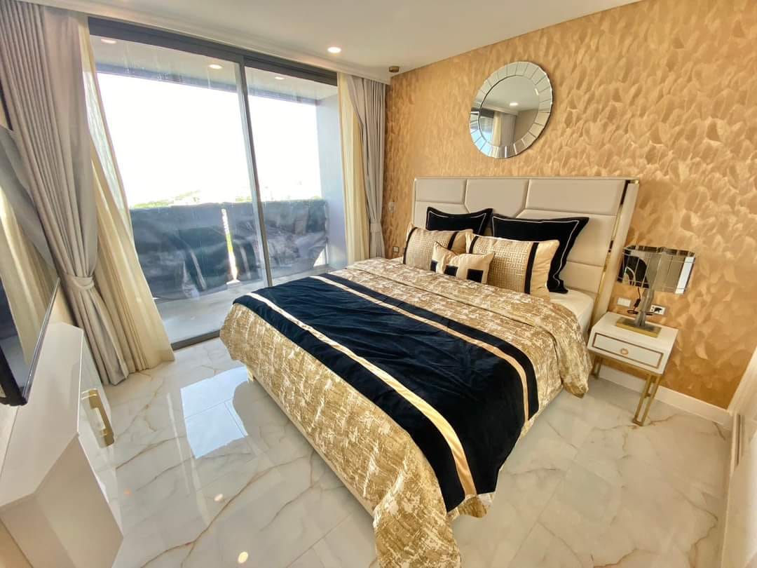 Building will include 59 floors with 1644 apartments with 1 and 2 bedrooms. Apartment with 1 bedroom 29 - 46,5 sq. m, apartment with 2 bedrooms 64 - 72 sq. m. Also available 1-bedroom apartments of 80 sqm with private pool. For apartments with swimming pool free chairs for the lawn, a sofa and a table. All apartments have stunning sea views.