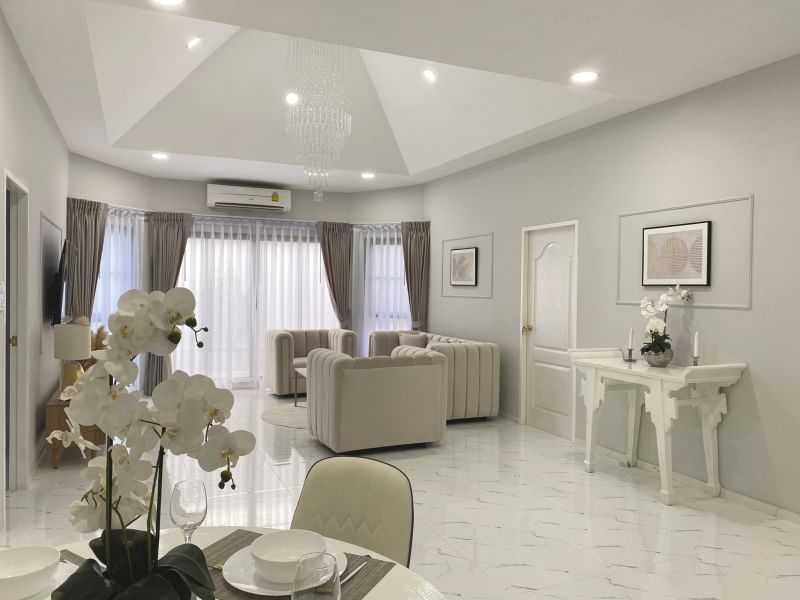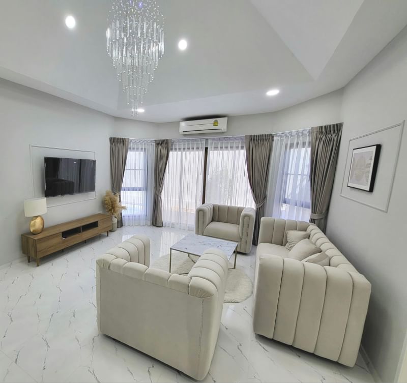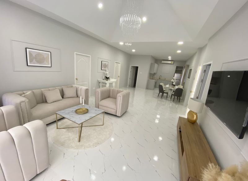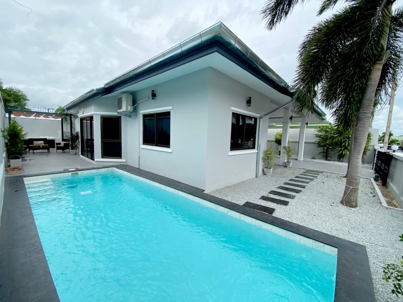 For luxury designed and renovated pool villas (3 bedrooms + 3 bathrooms) located in a gated community with a communal swimming pool. gym and playground