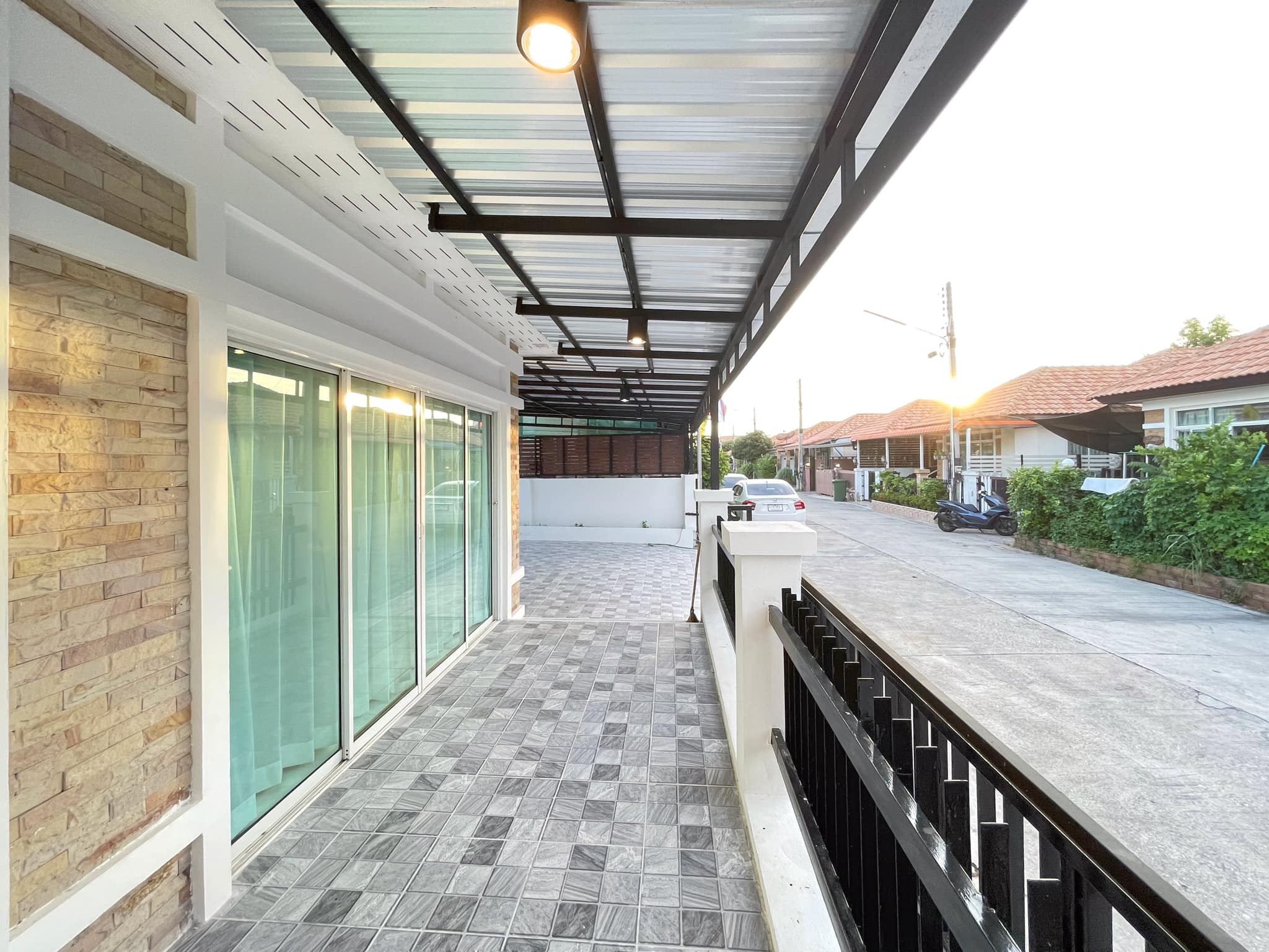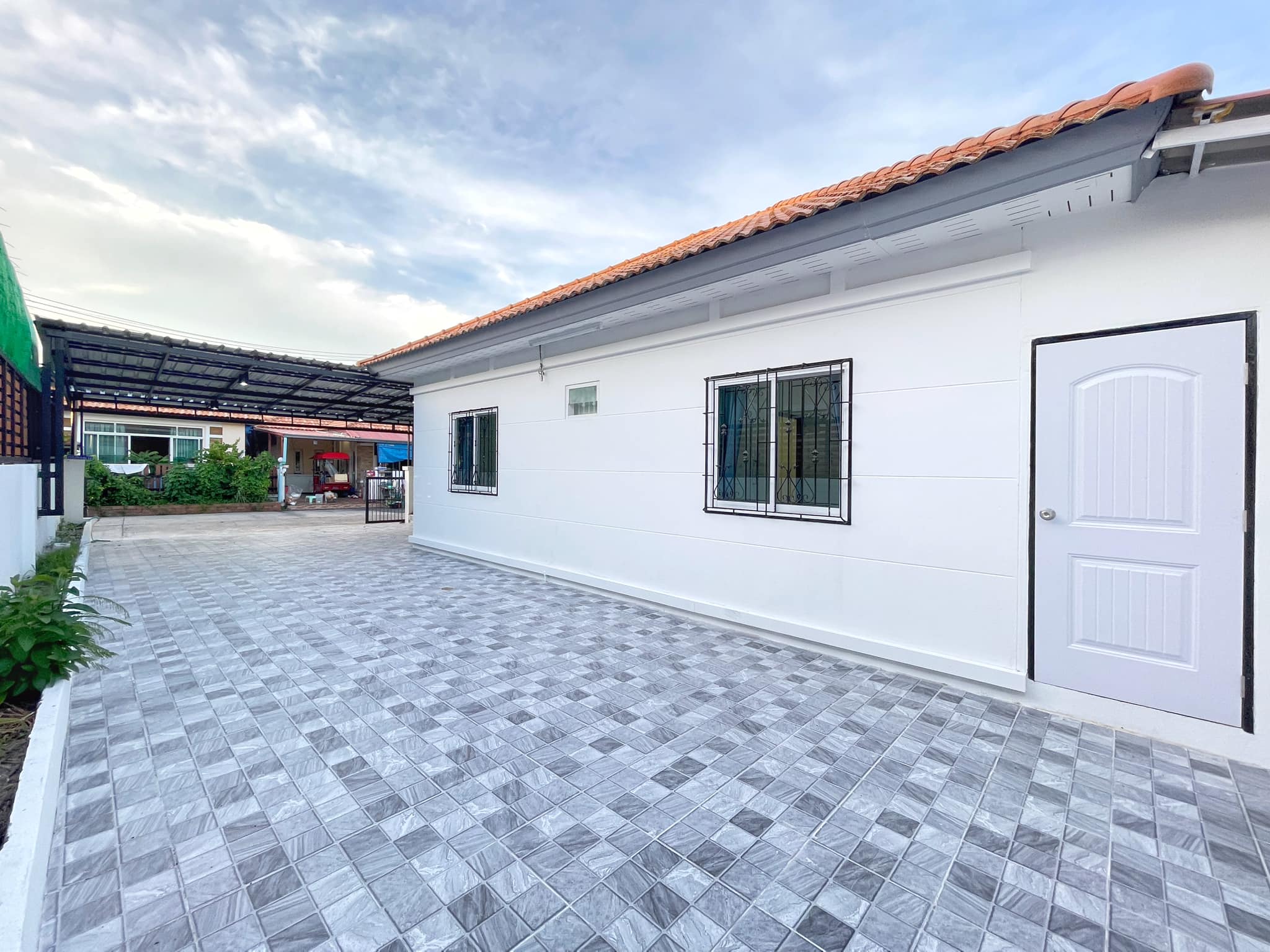 - Add the roof of the car park laying new tiles around the house
